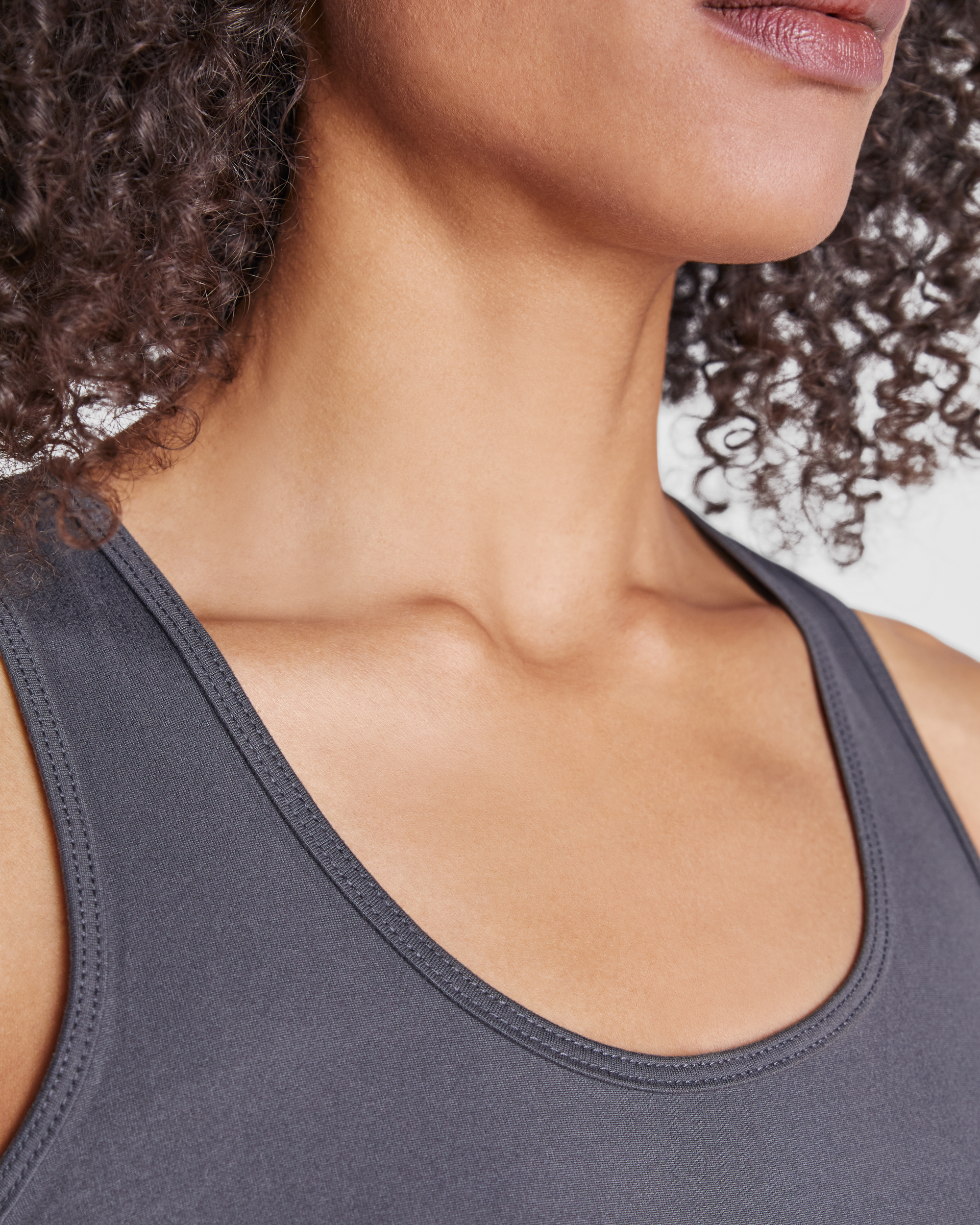 Camiseta técnica de tirantes entallada transpirable. Espalda nadadora con escote y sisas ribeteado. Tejido poliéster tacto algodón de secado fácil. Corte entallado.