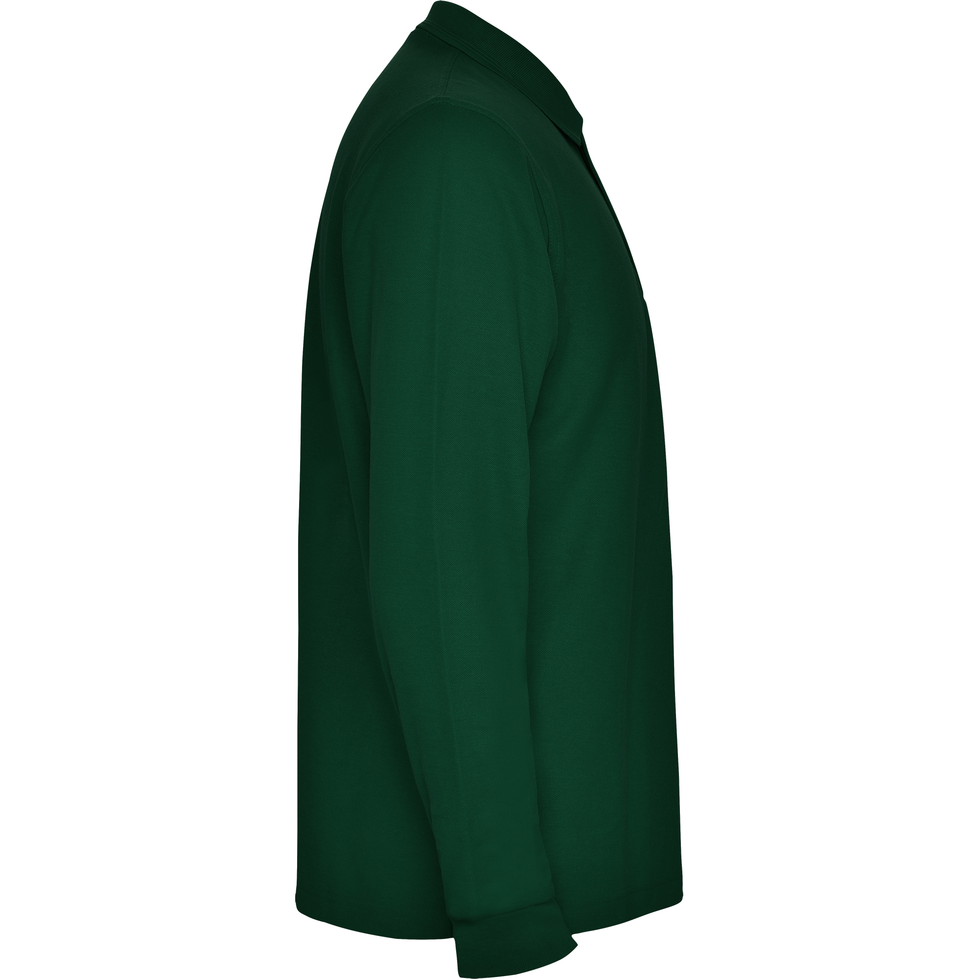 Polo de manga larga, con cuello y bocamangas acanalado, puños canalé 1×1 con elastano y cubrecosturas reforzado en cuello. Tapeta de 3 botones. Aperturas laterales.