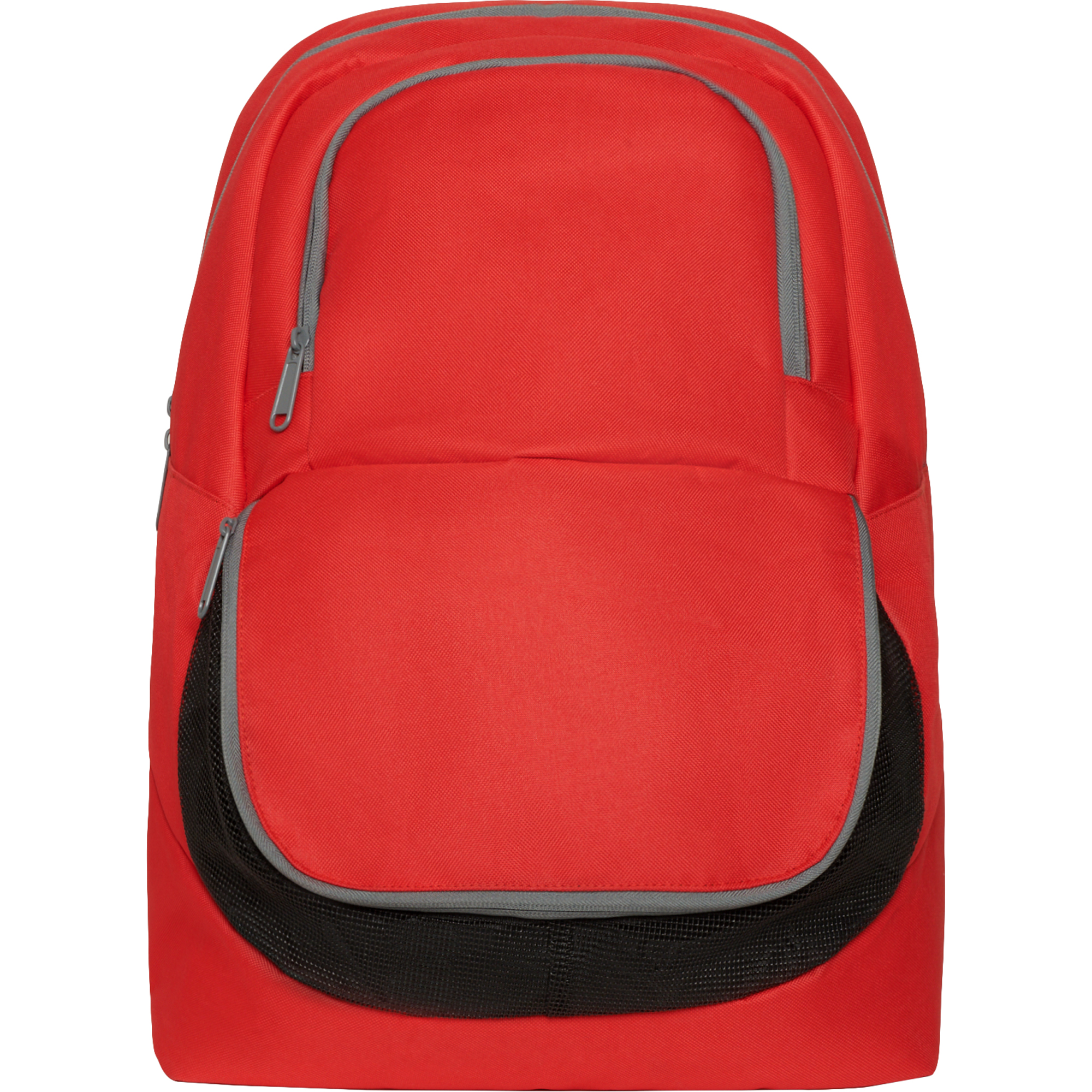 Mochila deportiva con diseño ergonómico y de fácil personalización. Doble asa reforzada para hombros y asa especial de mano. Respaldo acolchado. Bolsillo zapatillero de acceso frontal. Un bolsillo principal con doble tirador y un bolsillo frontal exterior de menor capacidad. Cremalleras a contraste en color gris. Detalles en color negro.