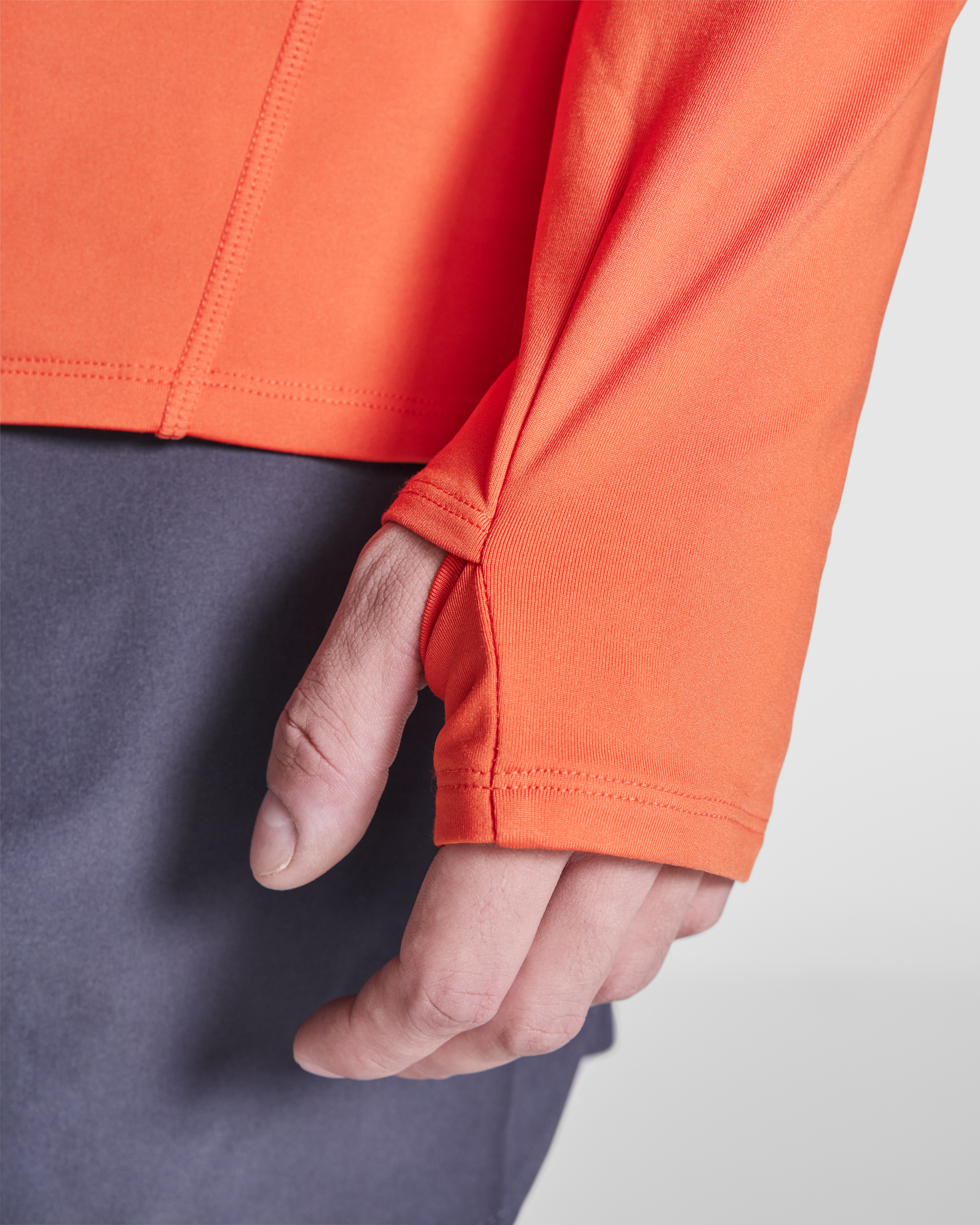 Sudadera técnica de manga larga ranglán. Cuello con media cremallera invertida con detalle reflectante. Cubrecosturas de refuerzo. Puños con apertura para el pulgar. Detalles reflectante en espalda. Bajo espalda ligeramente mas largo que el delantero. Tejido interior cálido perchado.