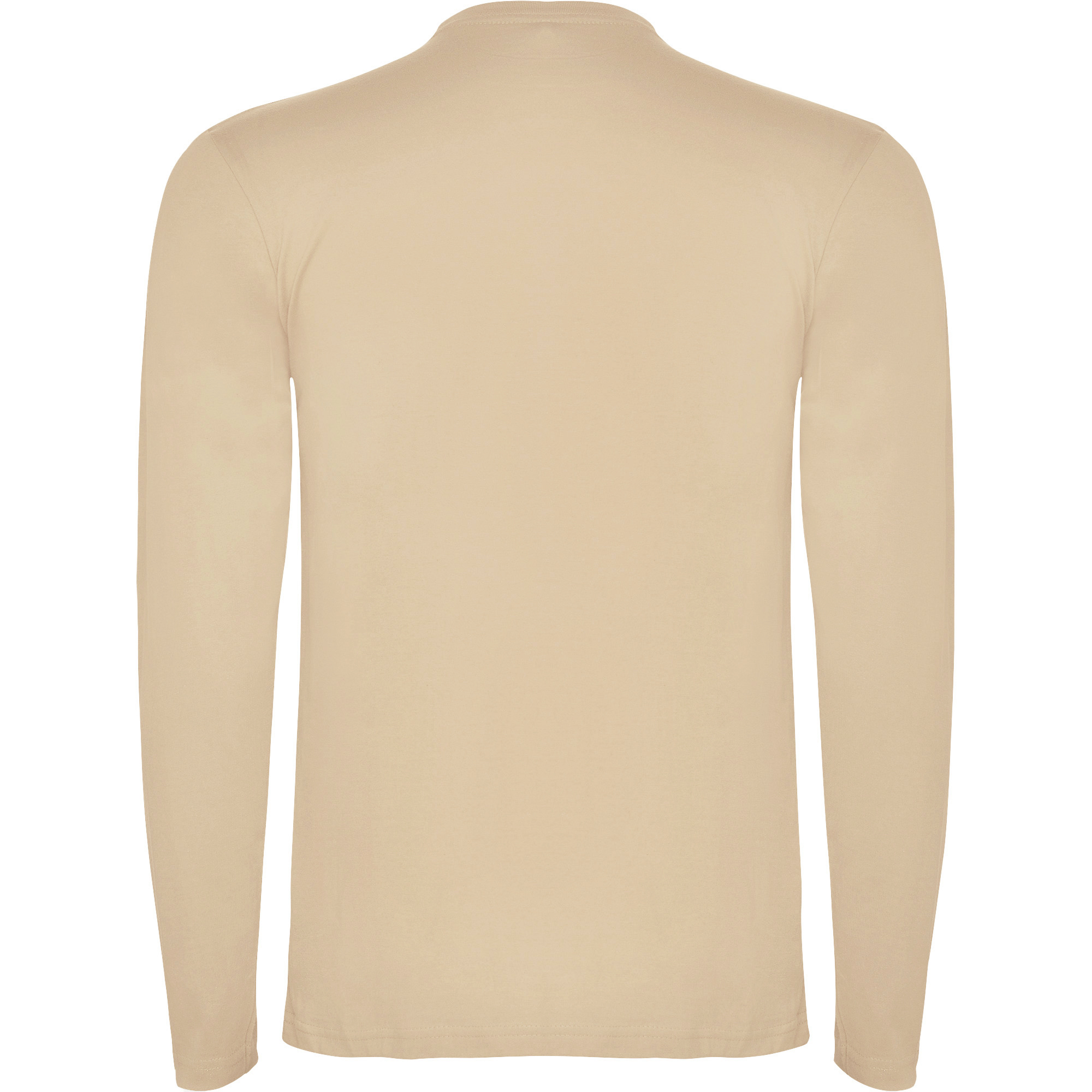 Camiseta de manga larga, tejido tubular y cuello redondo de 4 capas. Cubrecosturas de refuerzo en cuello y hombro. Sin puños.