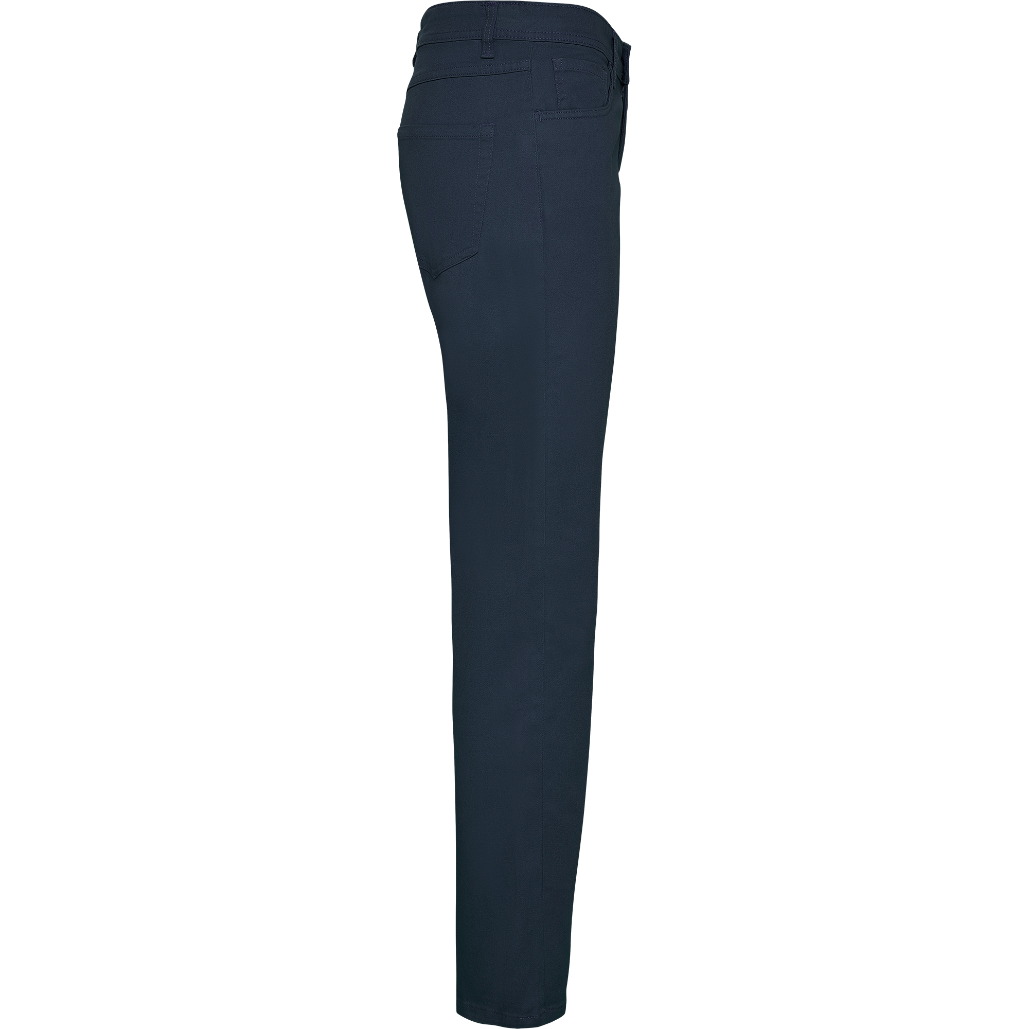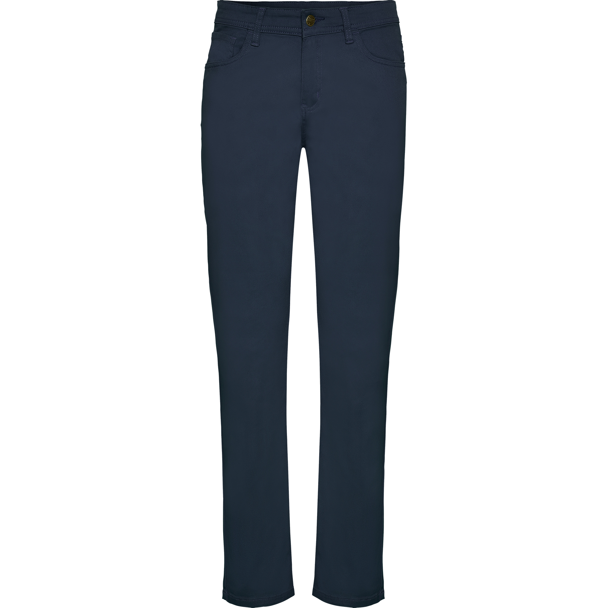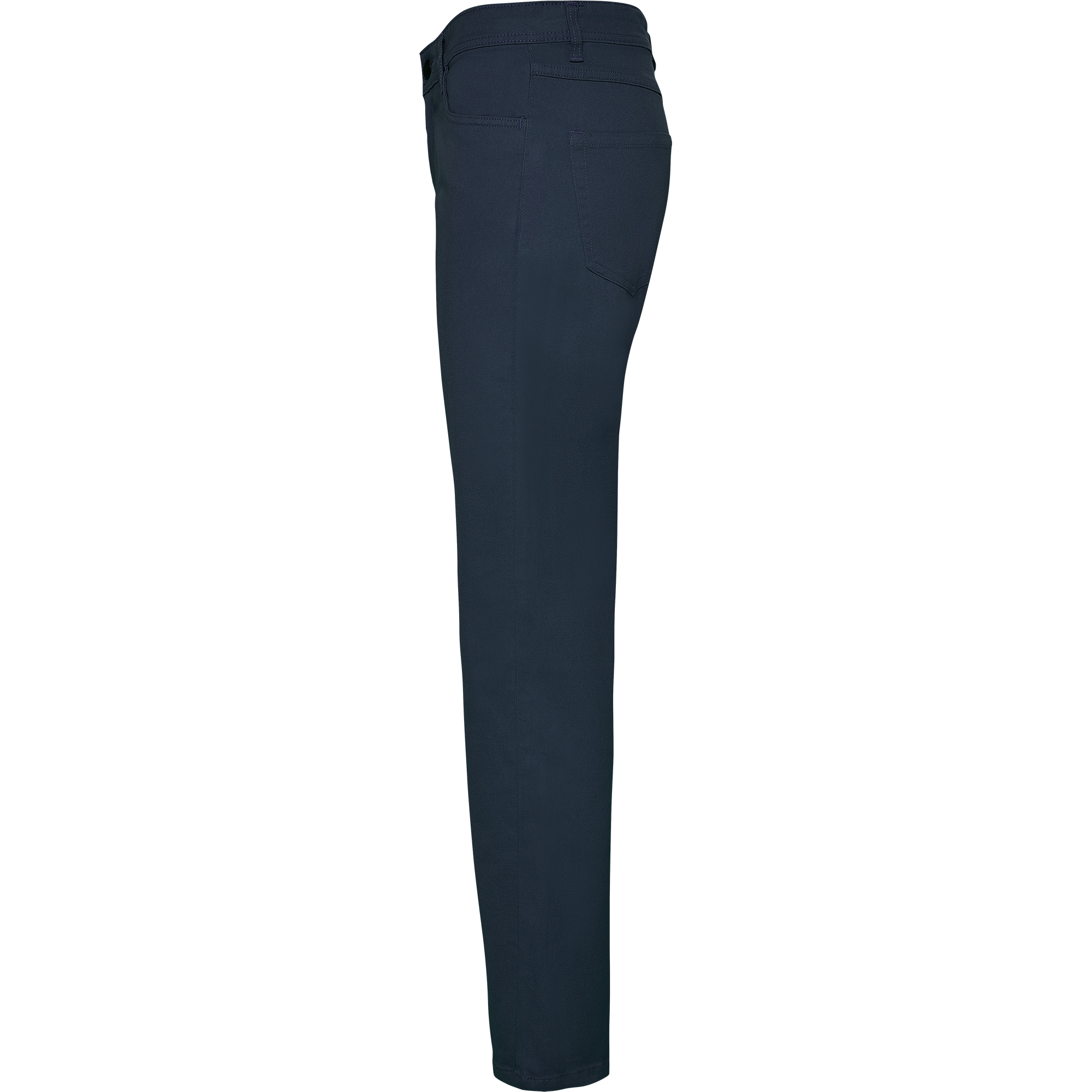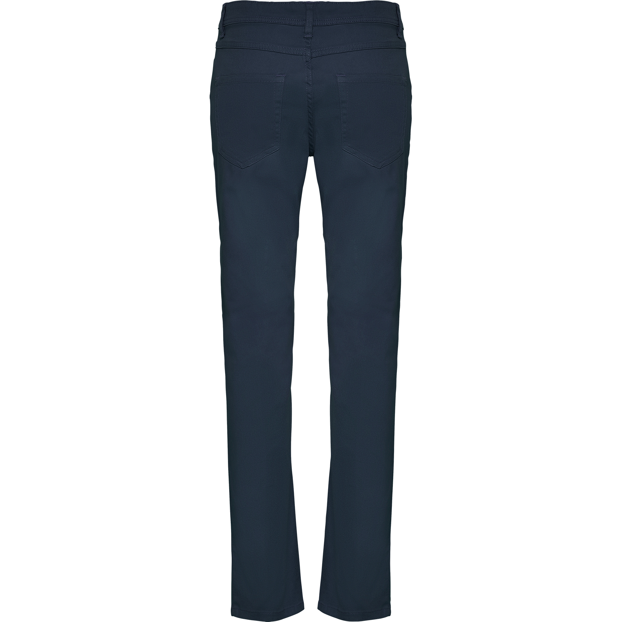 Pantalón largo de mujer entallado con tejido resistente y confortable. Trabillas para cinturón. Dos bolsillos laterales con bolsillo monedero. Dos bolsillos traseros con costura de adorno. Detalle de canesú estilo vaqueros. Especial para hostelería y ámbito laboral.