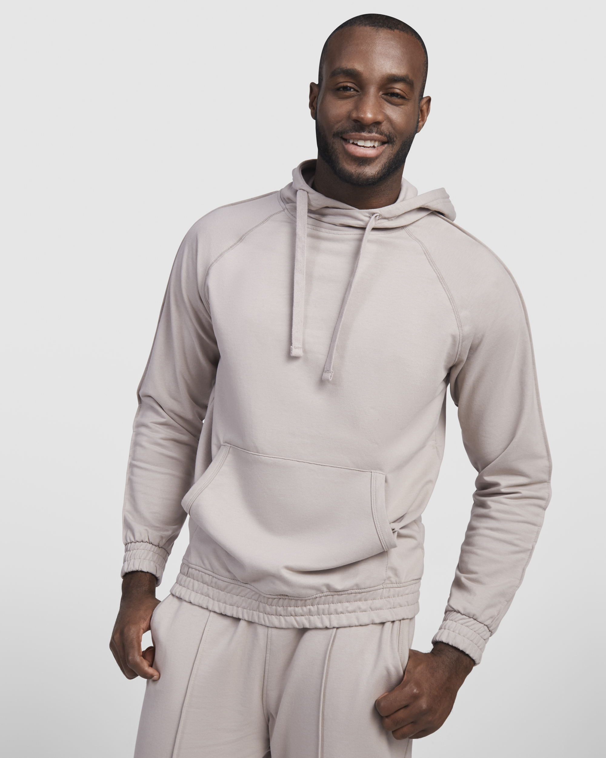 Sudadera con capucha unisex. Bolsillo canguro. Cordones planos con ojales bordados. Puños y cintura en tejido principal. Detalle de costura con relieve en mangas.