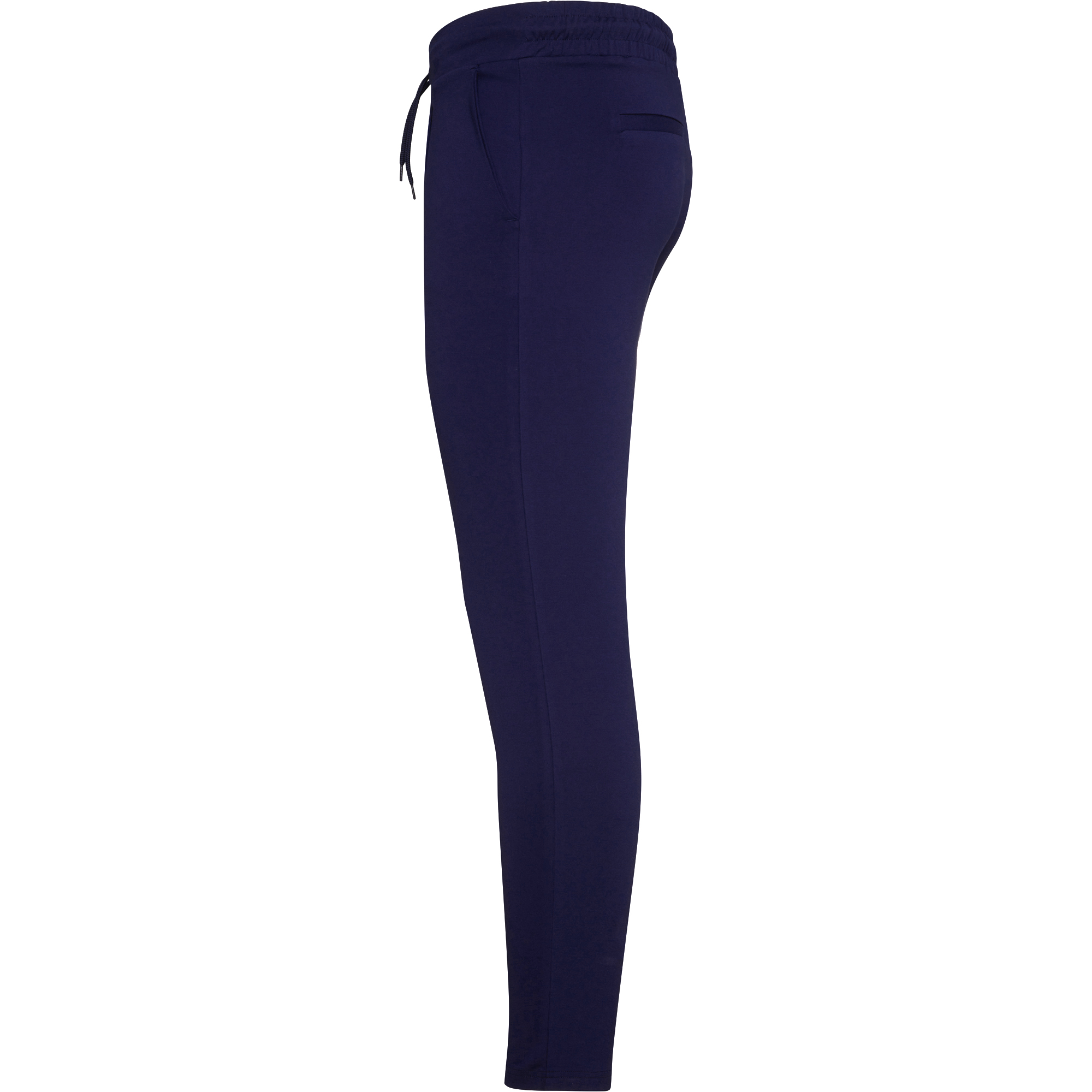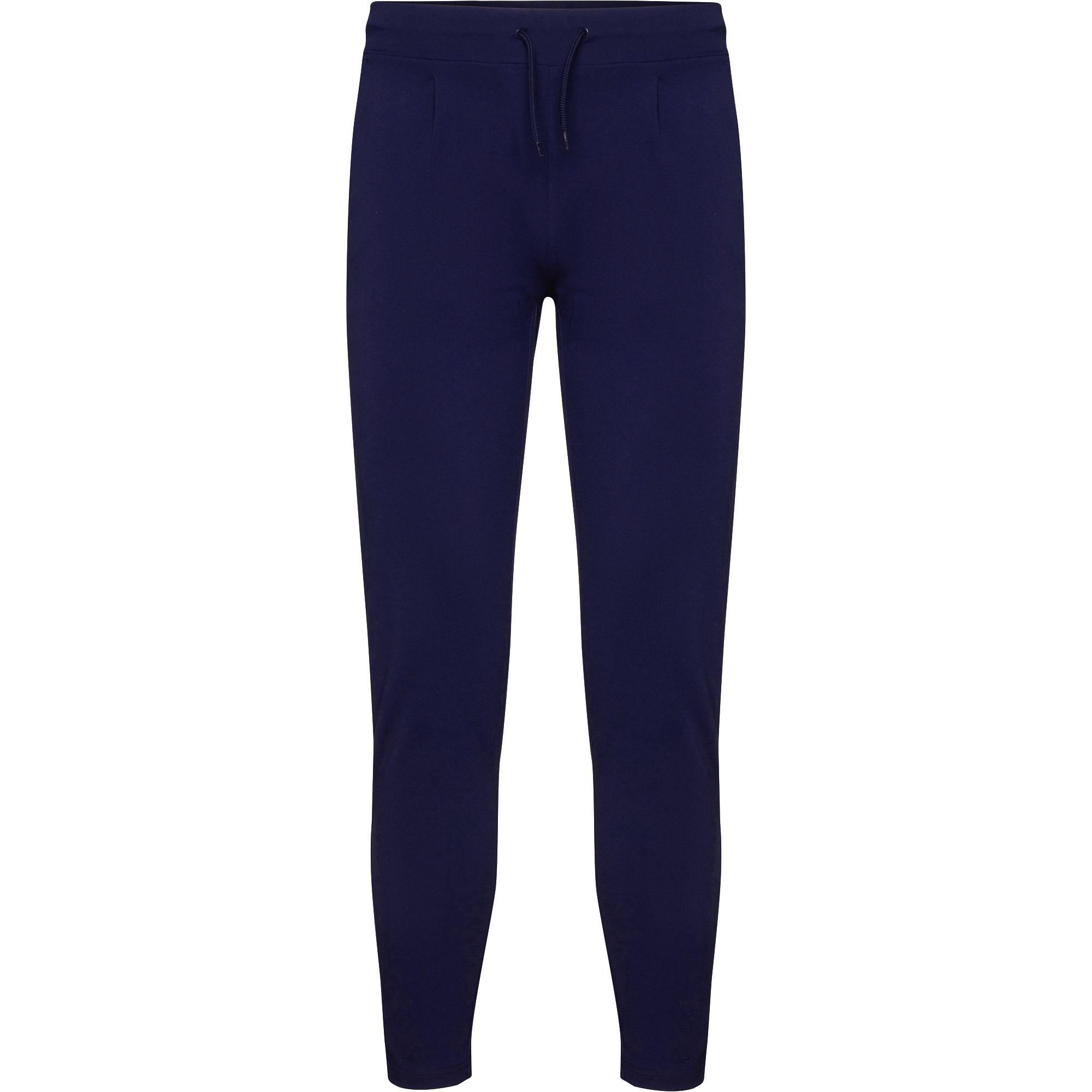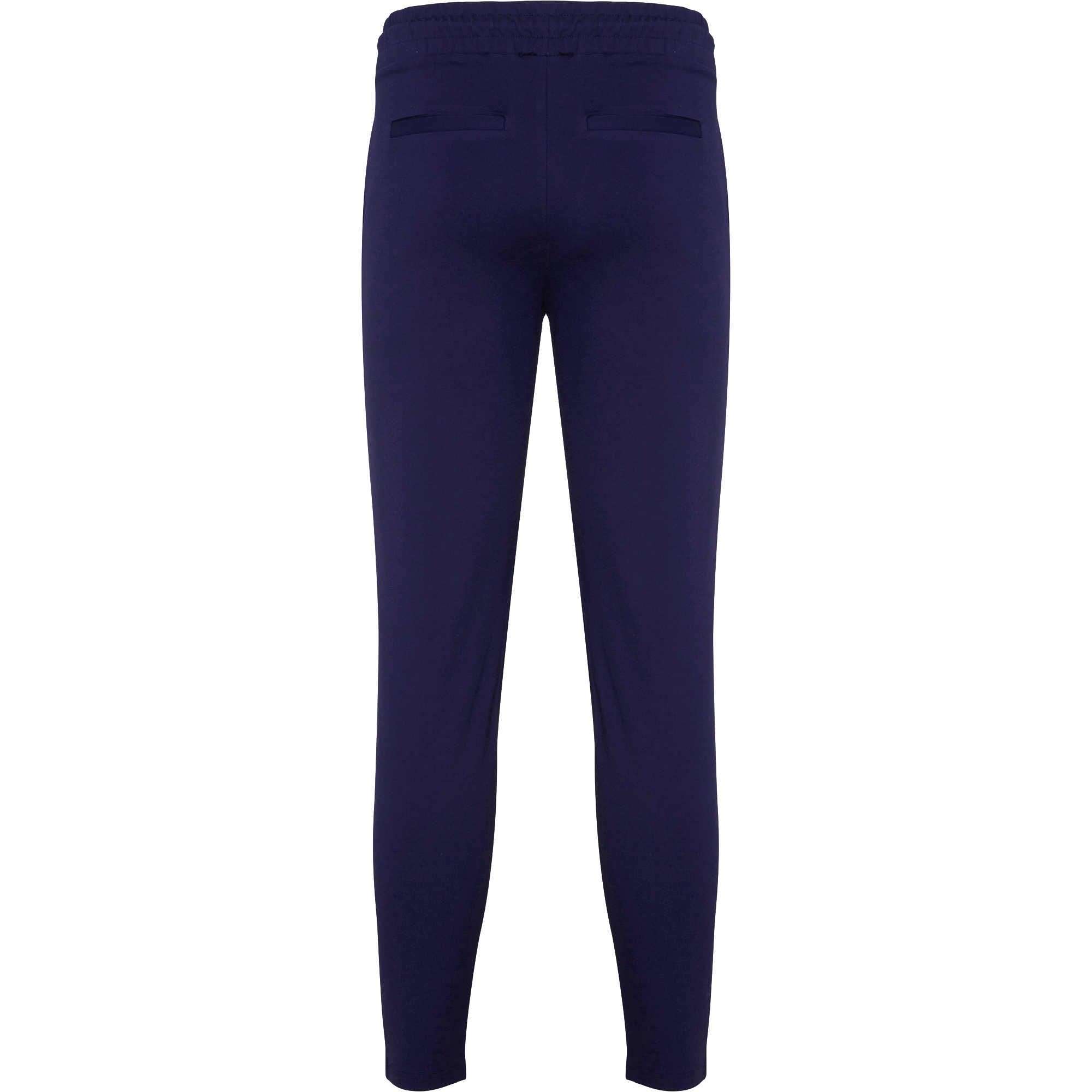 Pantalón de mujer en tejido elástico. Cinturilla con cordón ajustable y elástico en la parte trasera. Pinzas en la parte delantera. Dos bolsillos frontales. Dos bolsillos traseros decorativos