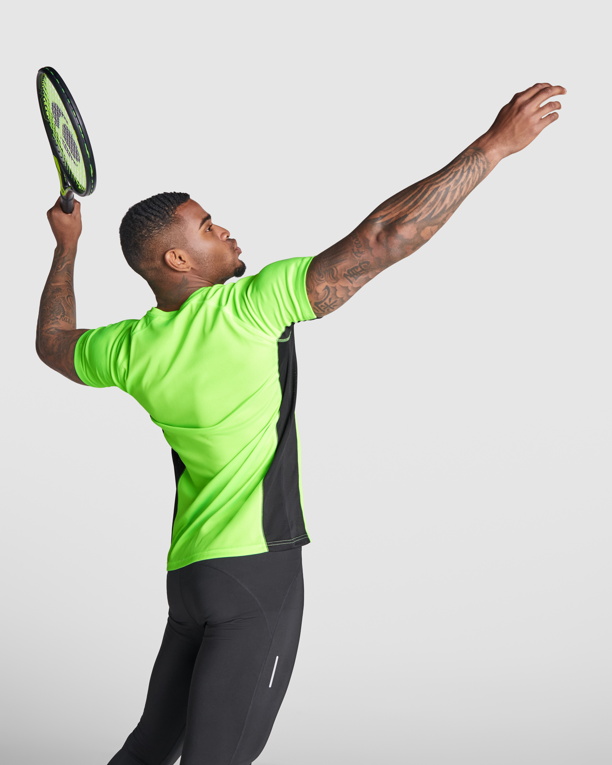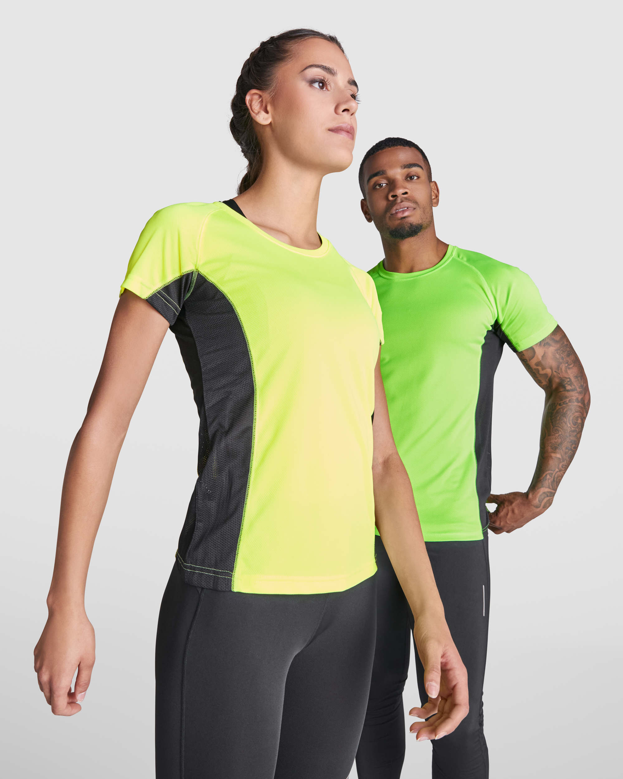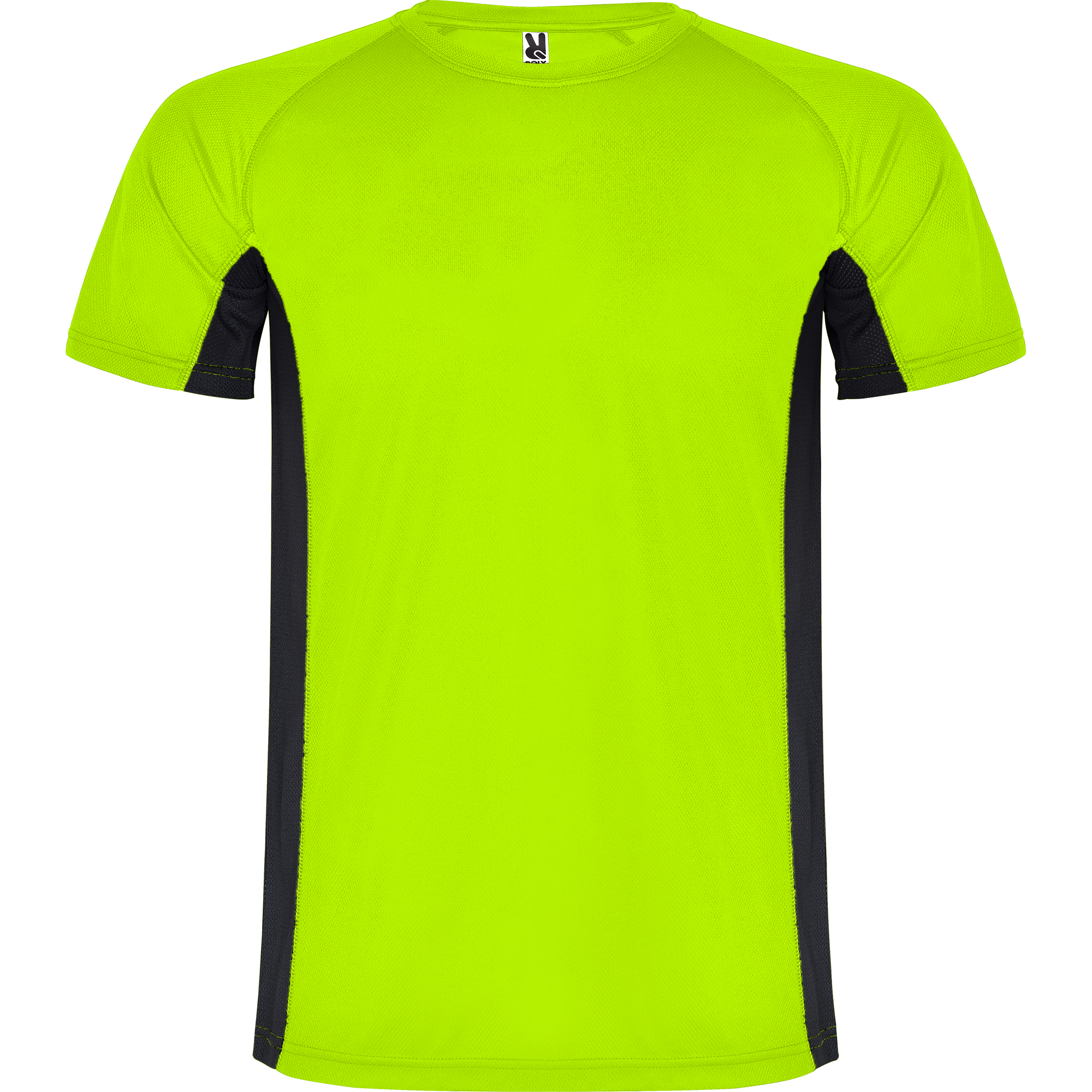 Camiseta técnica combinada con dos tejidos de poliéster, manga corta de estilo ranglán. Tejido principal bird’s eye y paneles laterales e interior de la manga con tejido micro perforado. Cuello redondo con cubrecosturas de refuerzo en su interior. Camiseta de tejido confortable y fácilmente adaptable al cuerpo.