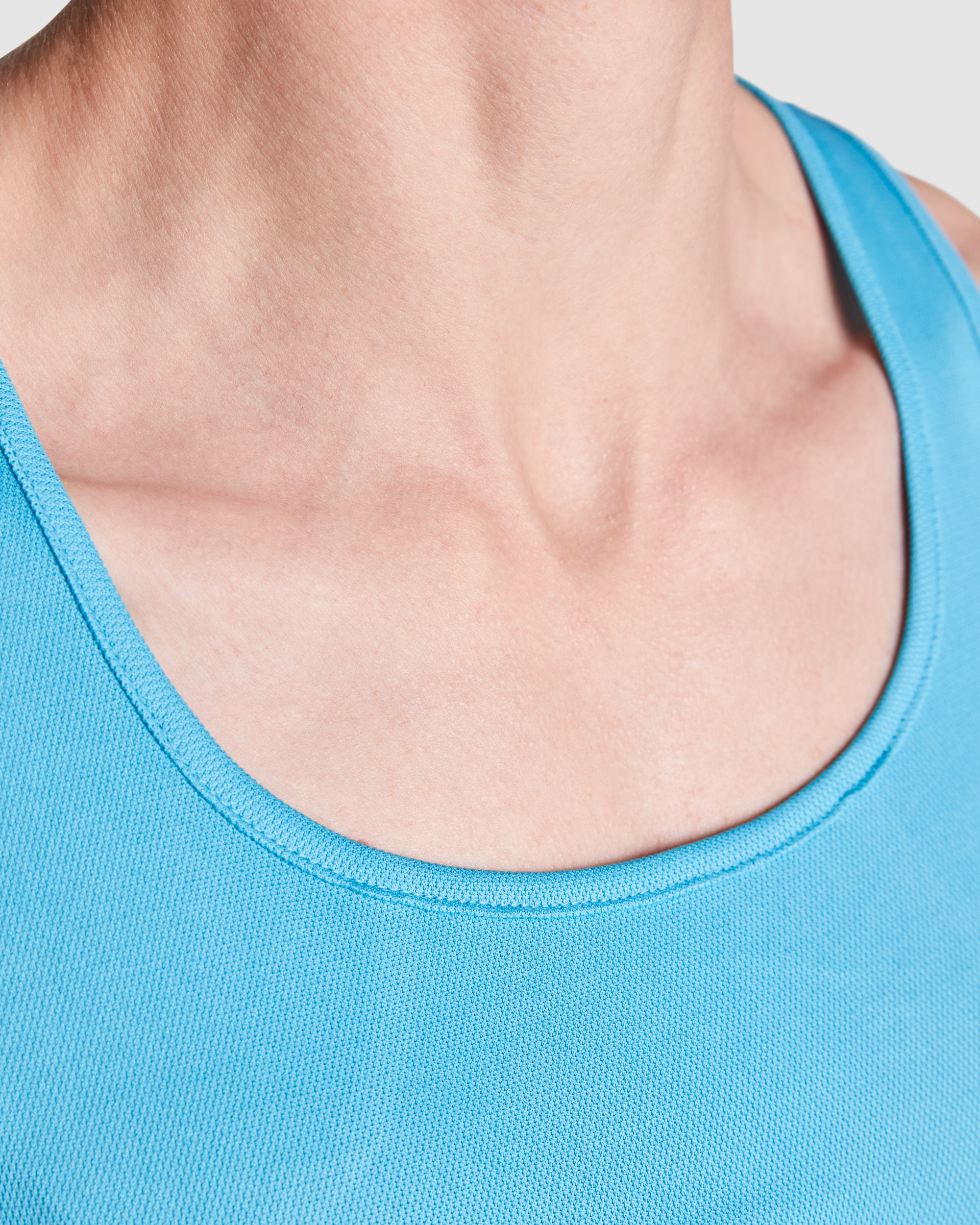Camiseta técnica de tirantes entallada transpirable. Espalda nadadora con escote y sisas ribeteado.