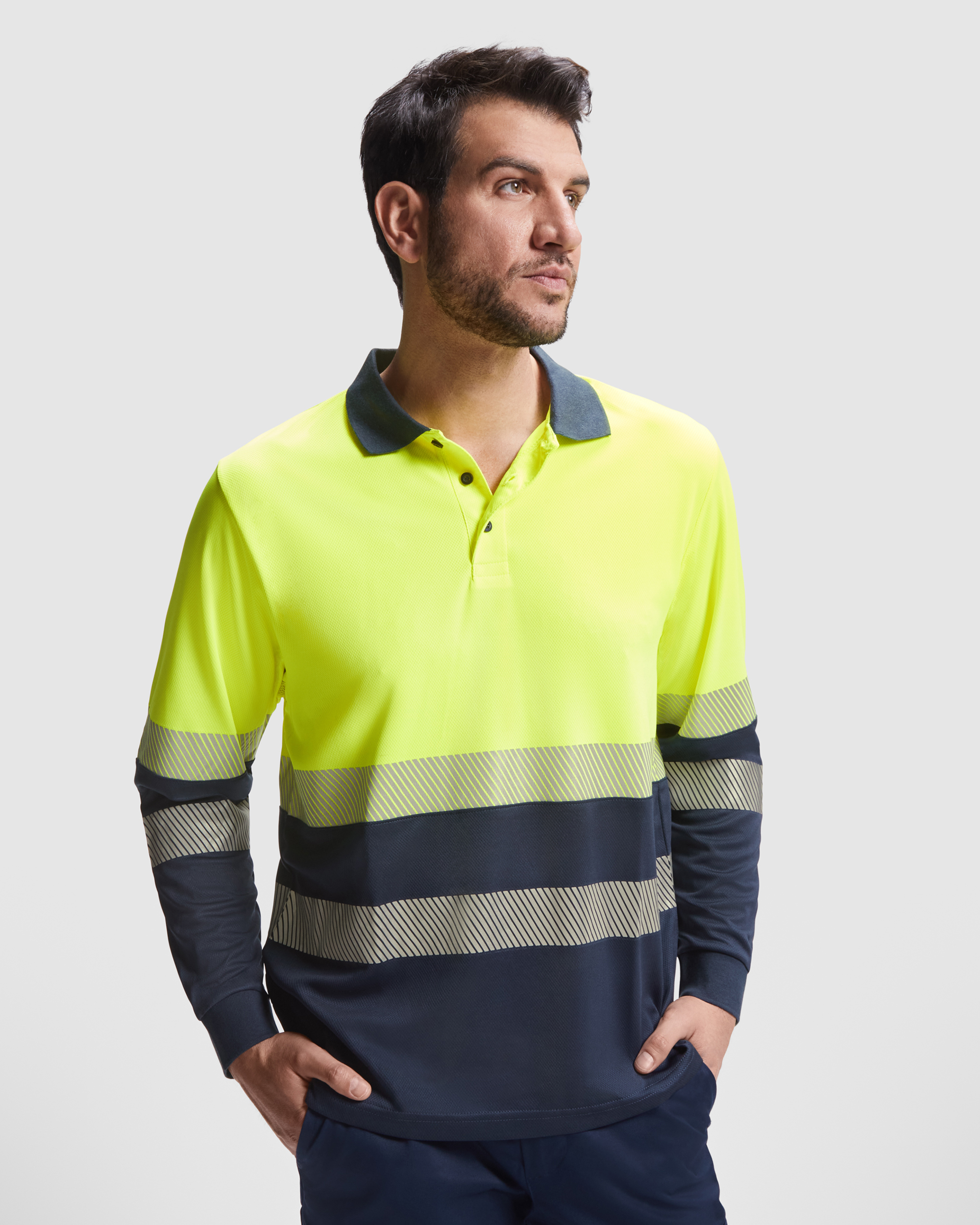 Polo técnico de alta visibilidad en manga larga.